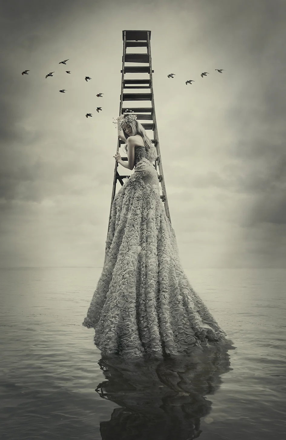 I came across the most beautiful wooden ladders in our garden. They must be at least 50 years old. At that moment, I had a vision. A vision of the most beautiful creature of the seas rising from the water. Her name is Aava. She´s the daughter of Ahti God of the seas.